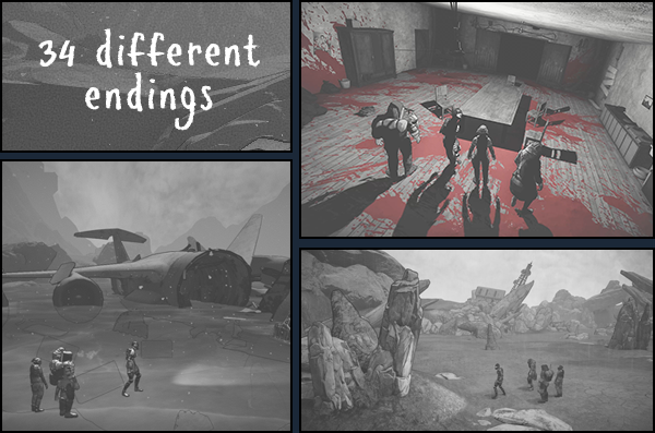 Discover a new path each playthrough (roughly 2 hours per successful run) with 34 possible endings.