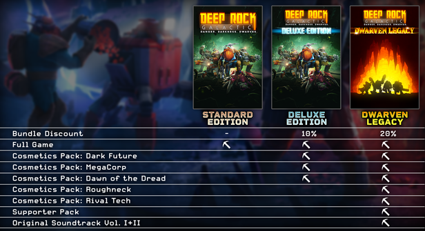 The standard edition is simply the base version of Deep Rock Galactic, nothing more, nothing less.